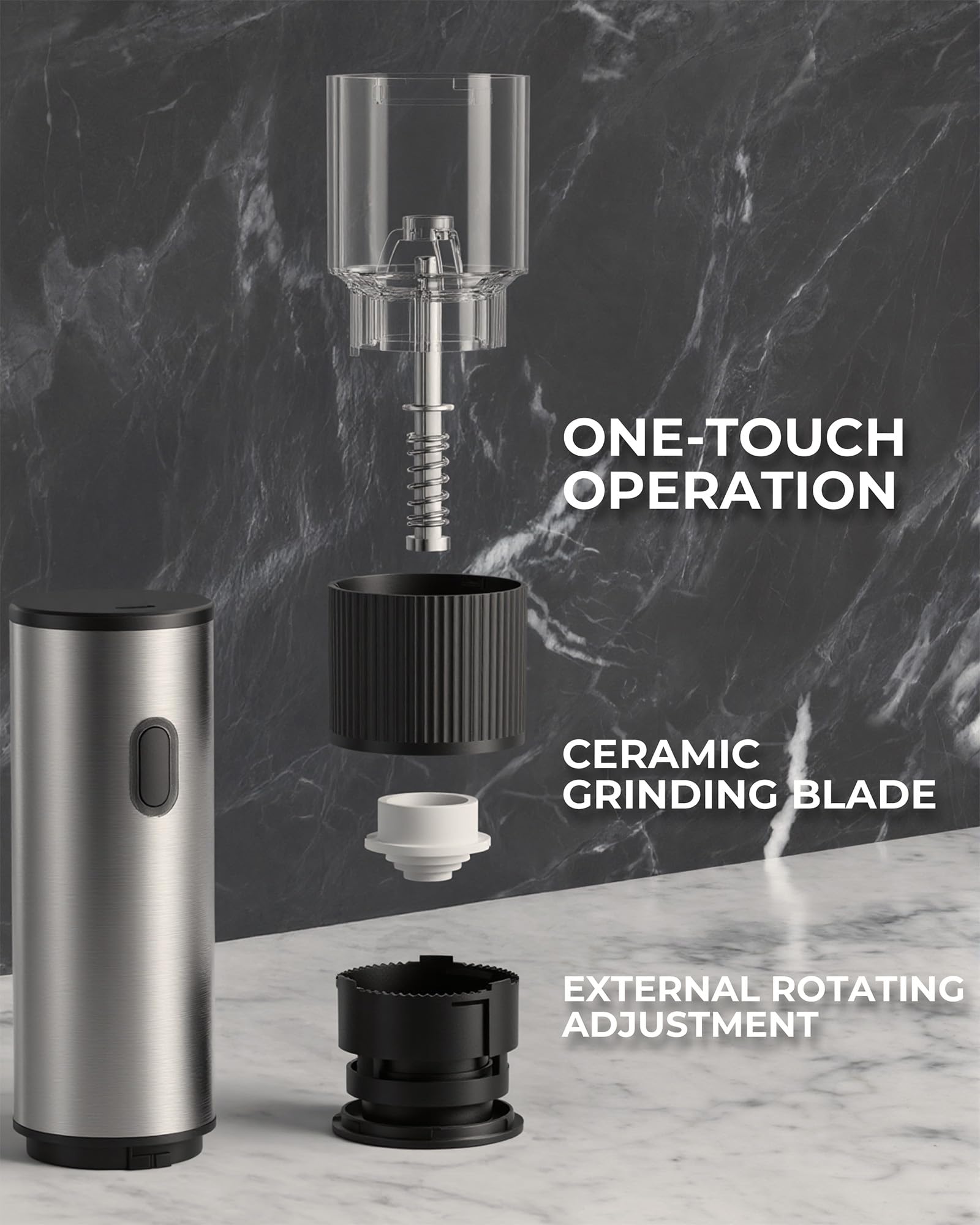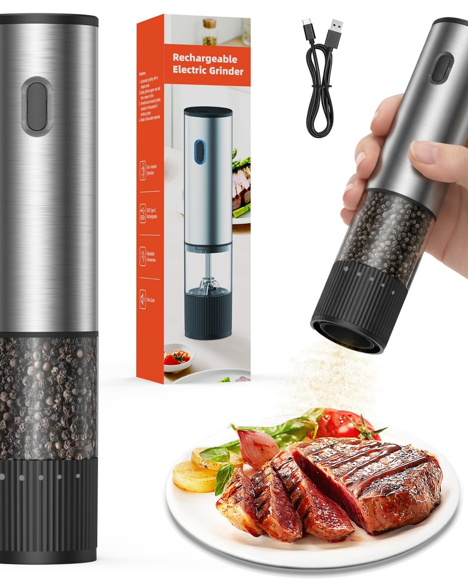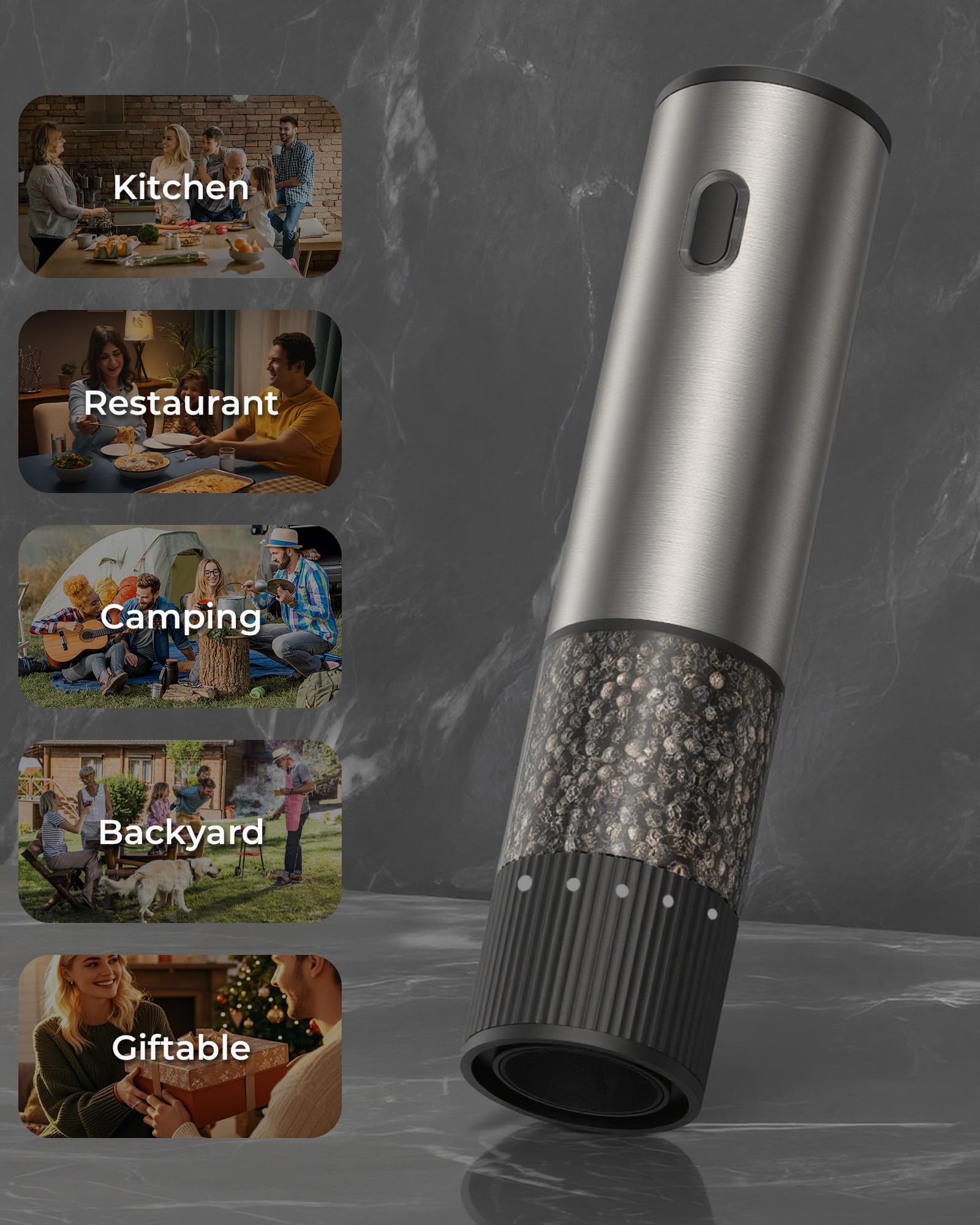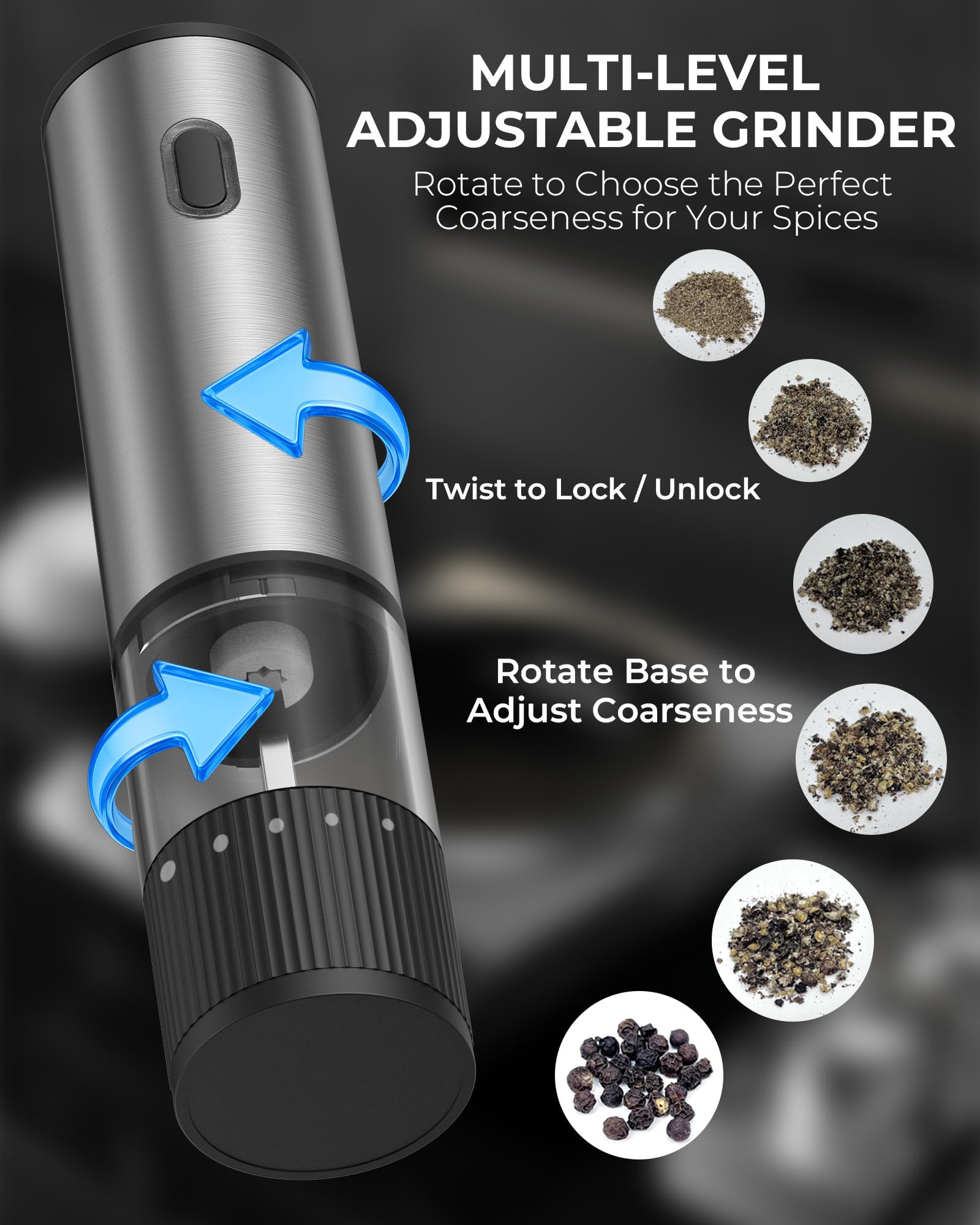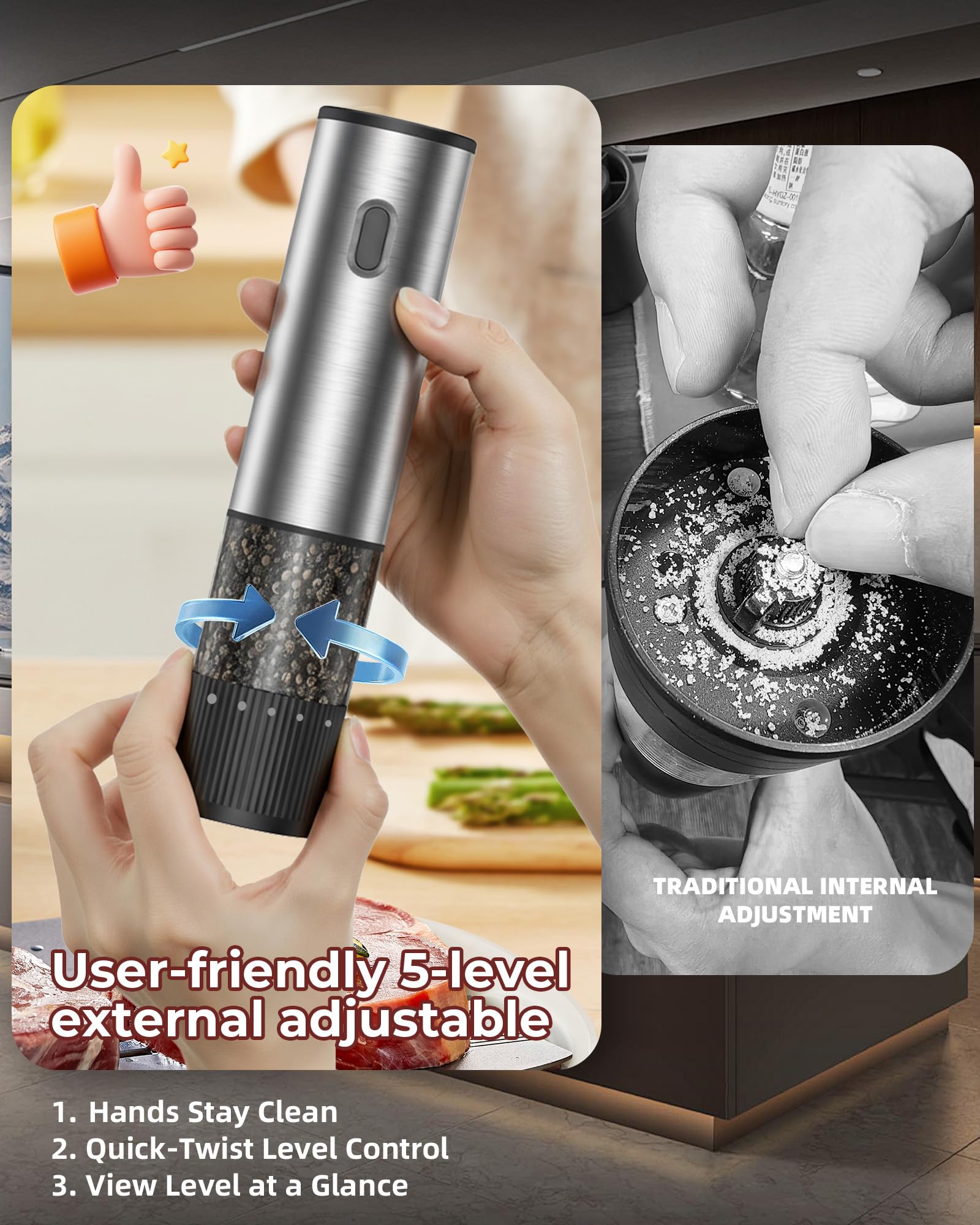The one-hand operation allows you to season food while cooking without stopping or using both hands. Ideal for busy kitchens, elderly users, and anyone who struggles with traditional grinders. The adjustable spice dispenser lets you control fine to coarse grinding, ensuring even seasoning every time.
